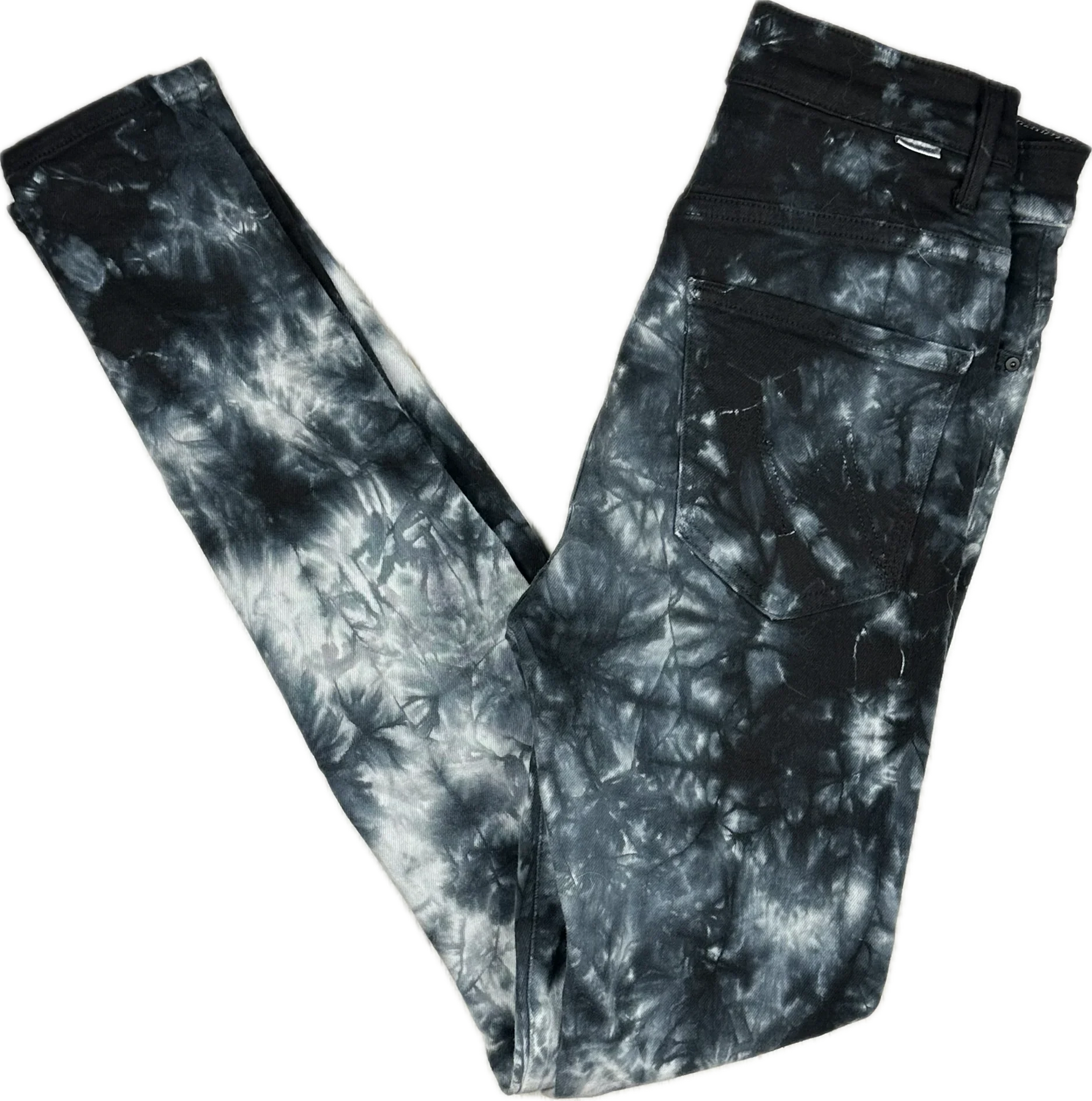 Black Tie Dye Look 'Winding Paths' Wash Soft Stretch Cotton Blend. Classic 5 Pocket style. High Rise. Skinny tapered leg.
