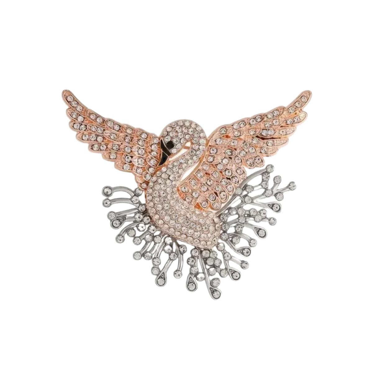 Gorgeous jewelled Swan -  in Clear Glass Crystals on Gold and Silver Metal.