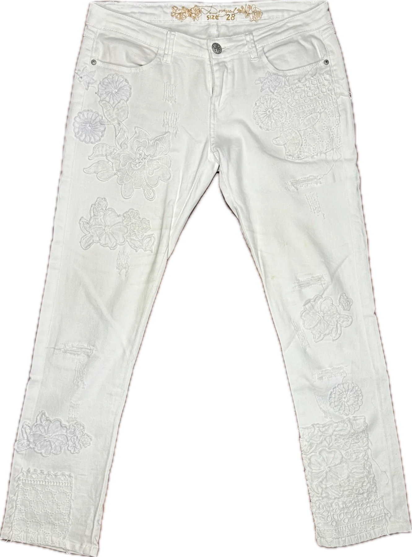 Desigual Embellished White on White Ladies Jeans- Size 28