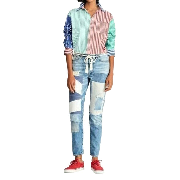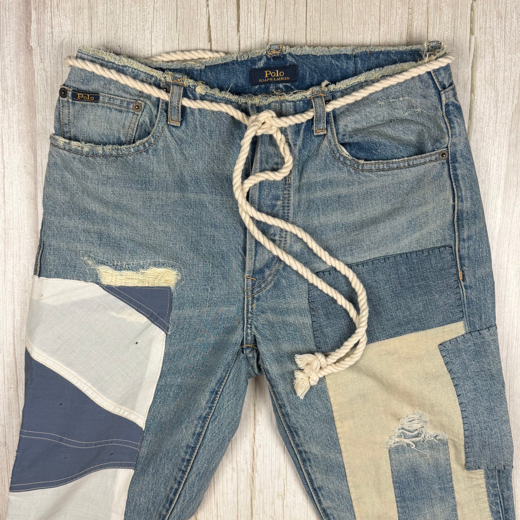Ralph Lauren 'Avery Boyfriend' Patchwork Rope Belt Denim Jeans - Size 26