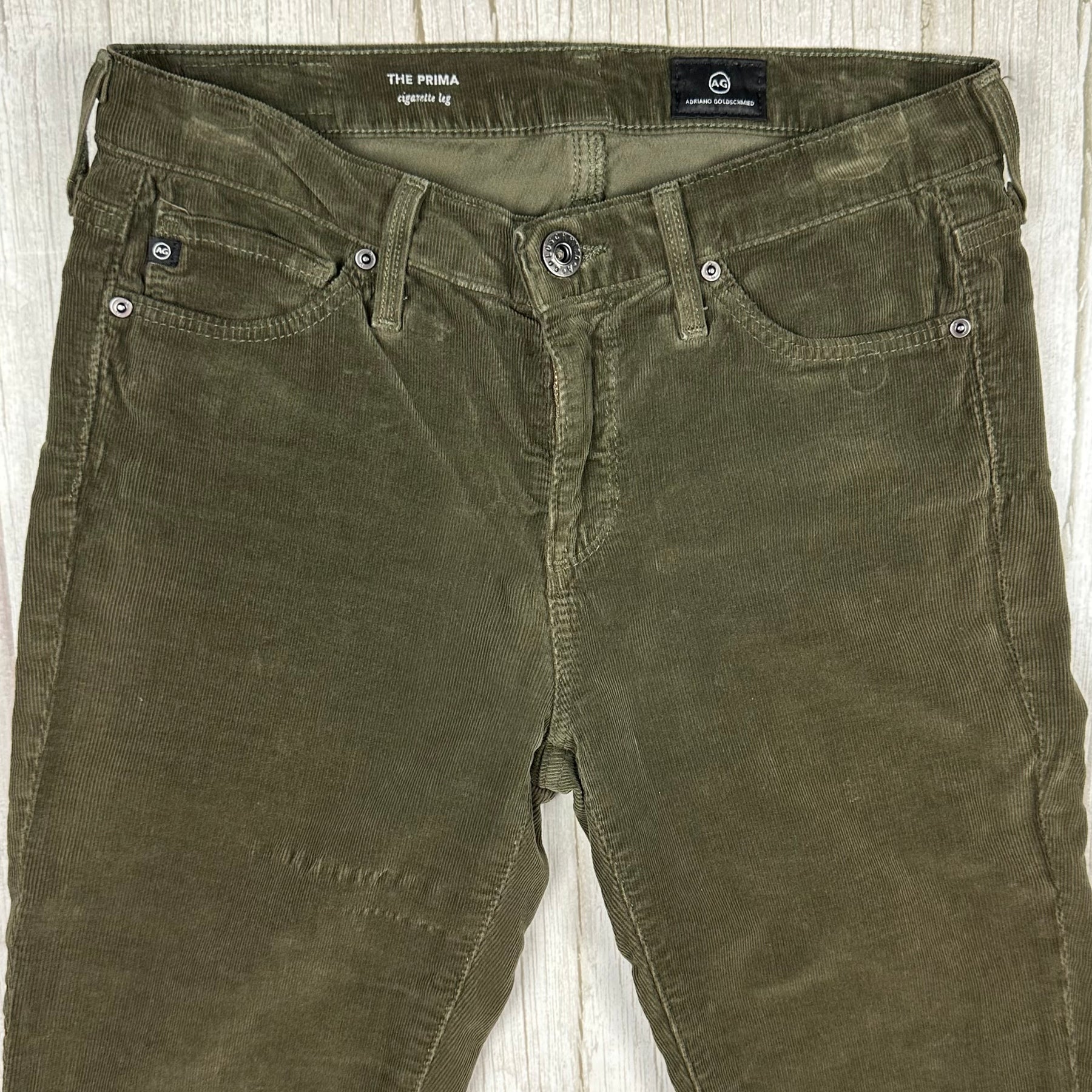 AG Adriano Goldschmied 'the Prima' Mid Rise Green Cord Jeans- Size 25R