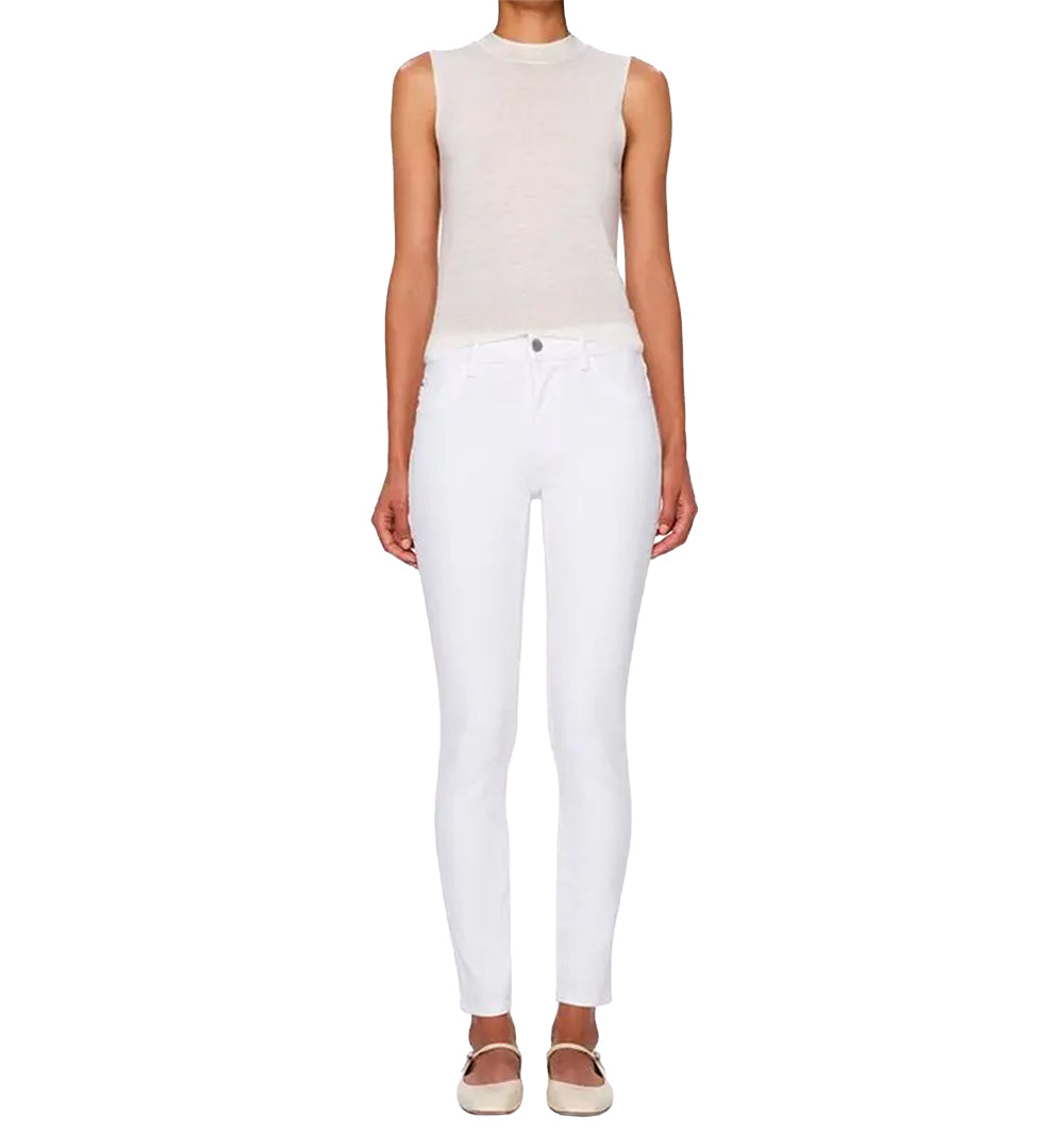 White Stretch Cotton Blend. 4 Way Stretch Denim - 360 Comfort. Classic 5 Pocket. Slim Fit. Mid Rise.