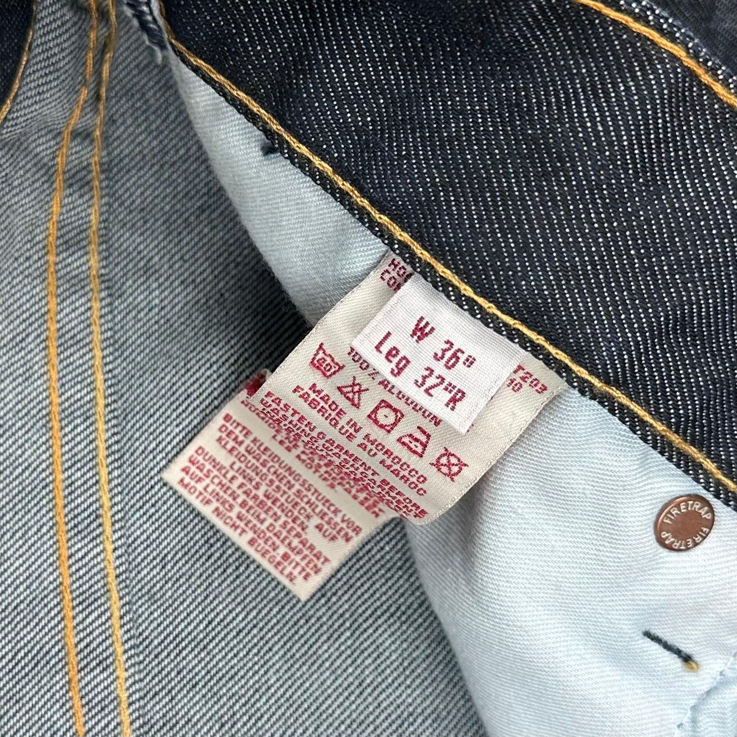 Dark Blue 'Brusher' Wash Rigid Denim. Classic 5 Pocket. Relaxed Fit. Straight leg. Button Fly.