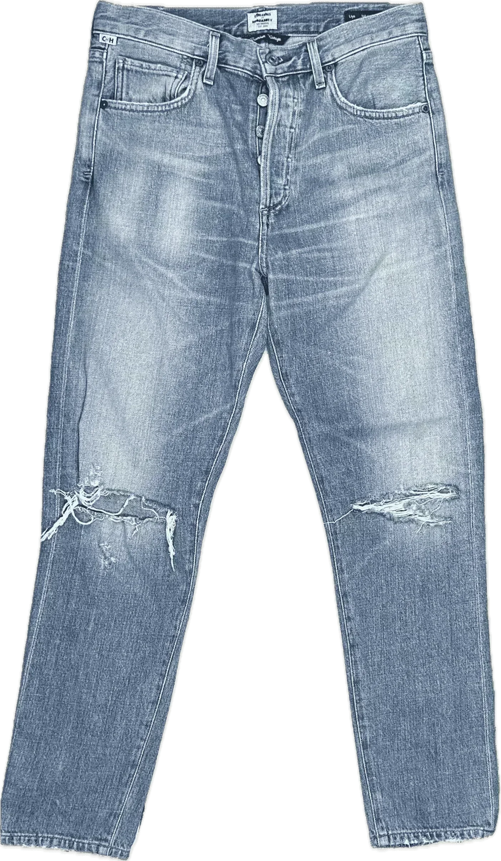 Citizens of Humanity is a Los Angeles-based premium denim brand known for its focus on fit, fabric, and wash, established in 2003. The brand, founded by Jerome Dahan, is recognized for its commitment to quality and its pioneering approach to designer denim. Citizens of Humanity operates its own laundry facility in Los Angeles and emphasizes sustainable practices, including a move towards regenerative cotton and Eco-Indigo dye