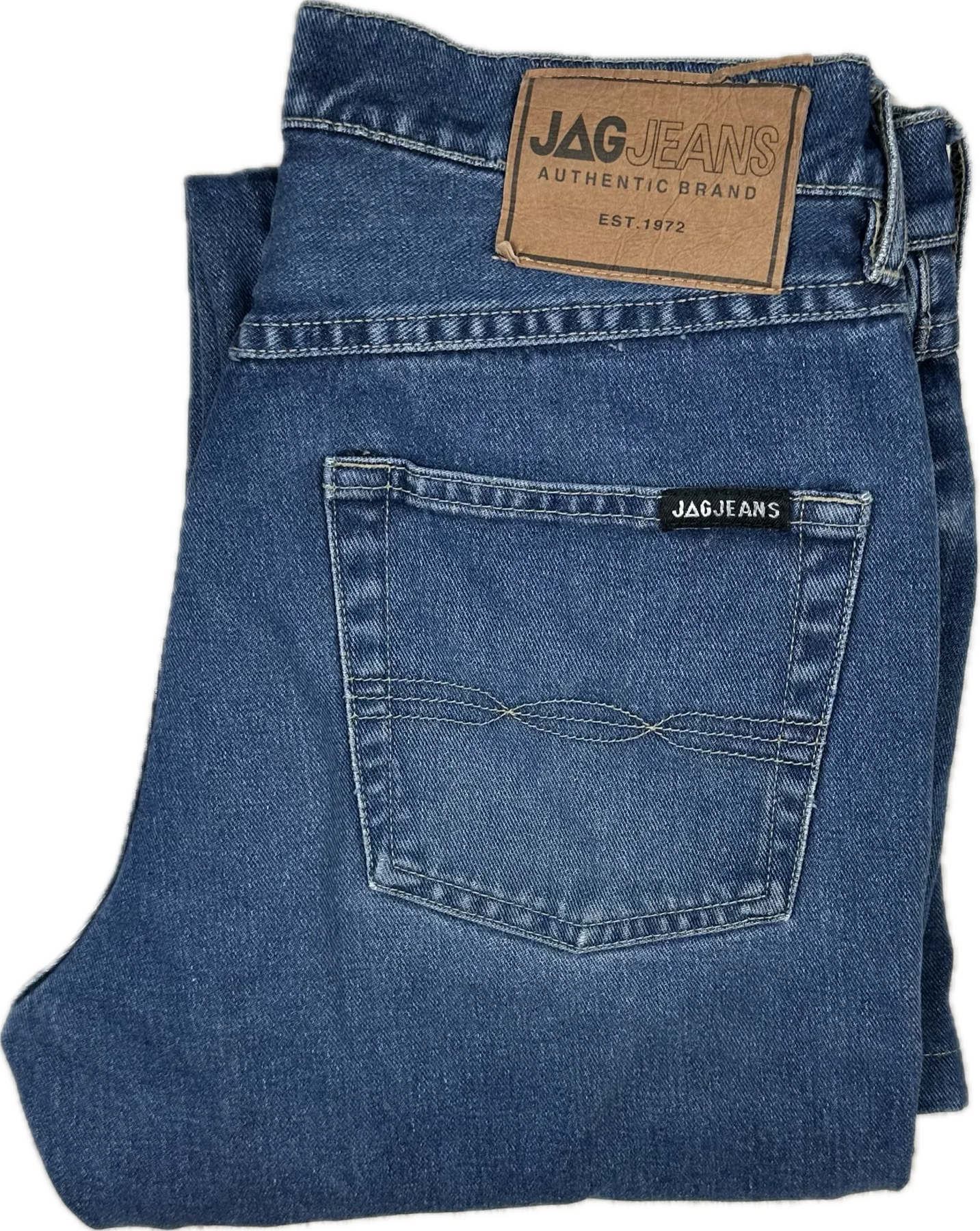 Blue Antique Wash Soft Rigid Denim. Classic 5 pocket. Straight Boot Leg. Mid Rise. Easy Fit. Contrast Topstitching.Back Waist Label with tear at top.