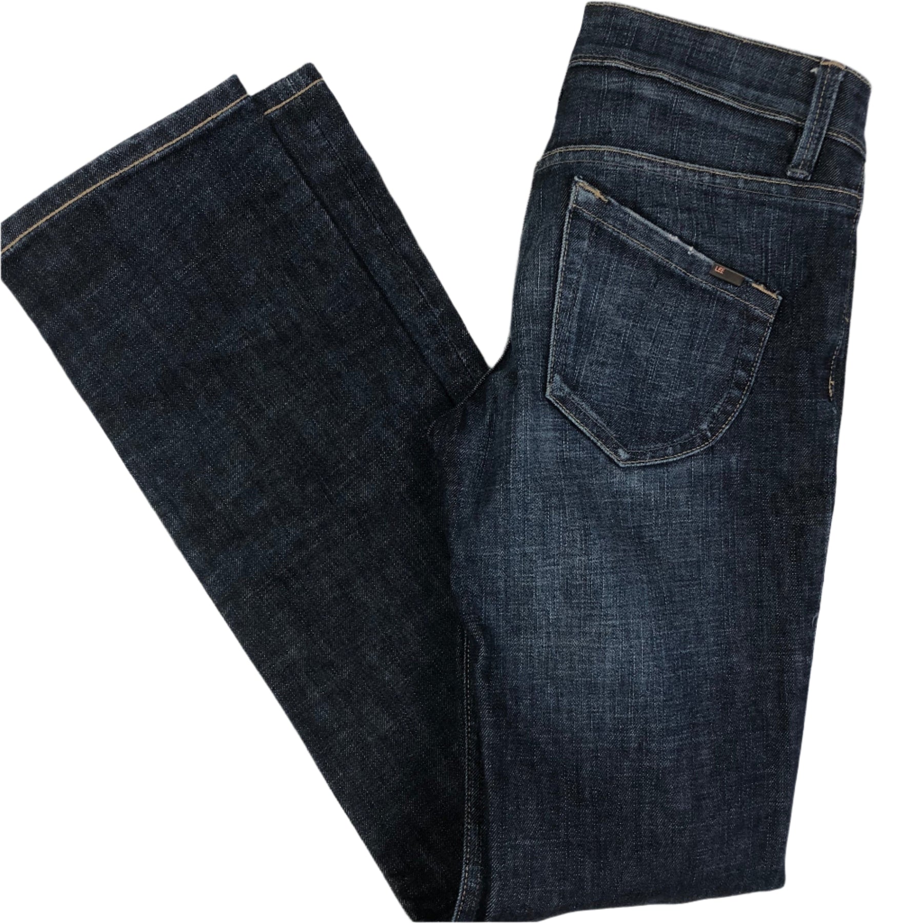 Blue Vintage wash. Low Rise, Zip Fly. 5 pocket. Long Straight Stovepipe leg. Angled back pocket. Minimal Branding