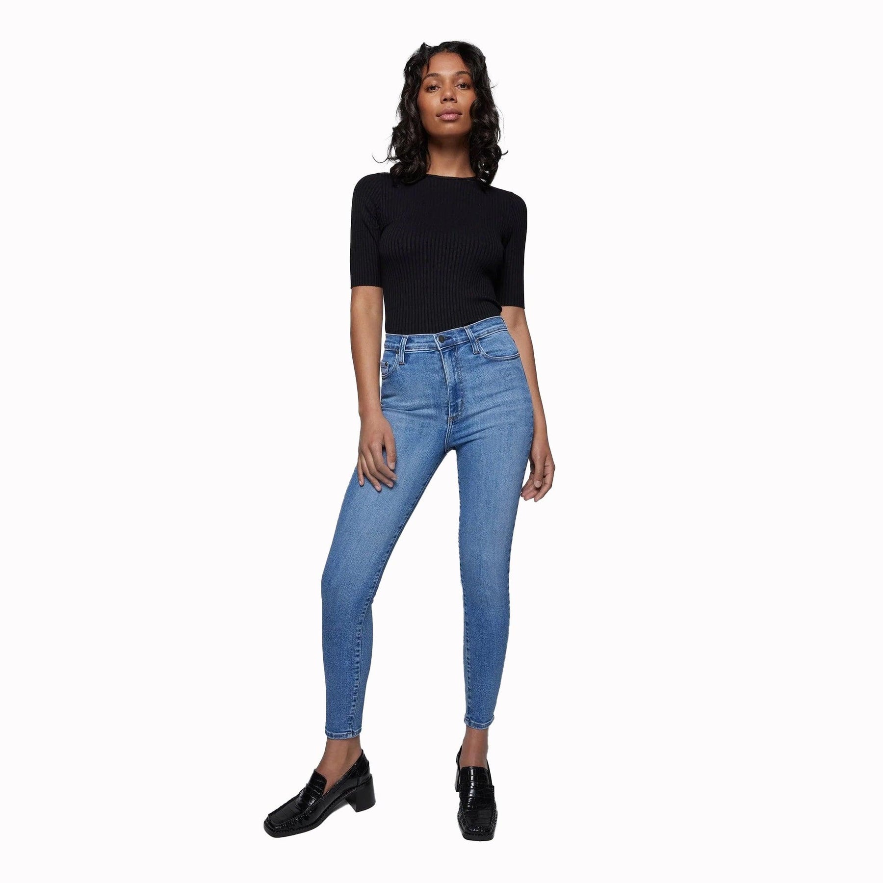 Light Blue Vintage Wash. 5 pocket. Stretch Denim. Tapered Skinny Leg. Copper & Brass Hardware. Mid Rise. Ankle Grazer